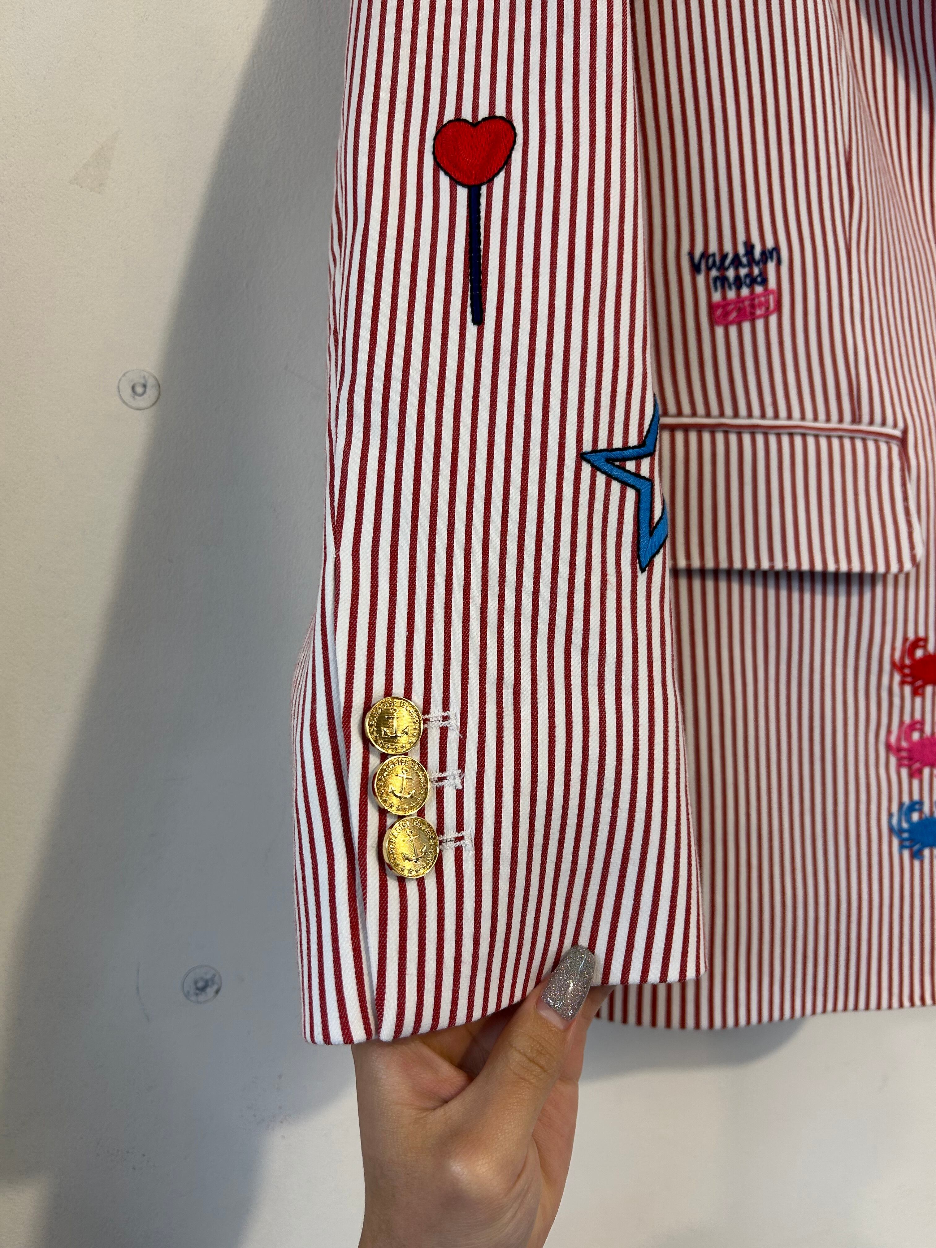 海外ならではの華やかな刺繍×ストライプのジャケットです♪