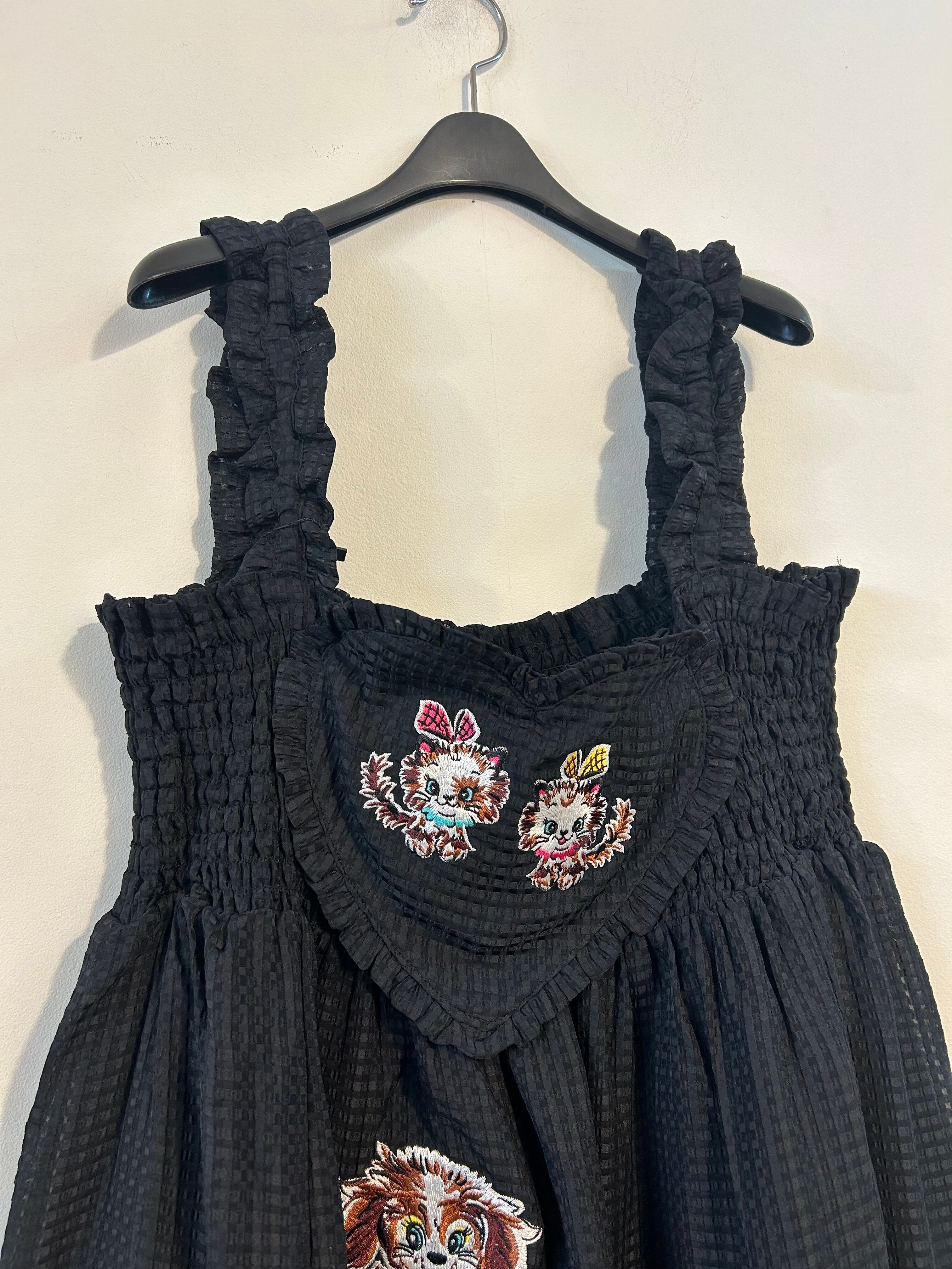 キュートなハートモチーフが施されたレトロな雰囲気漂うワンピースです♪ フレアシルエットとふわっとしたエネルギーが、デイリースタイルを格上げしてくれる一枚! お気に入りのアクセサリーと合わせて、ガーリーな大人コーディネートを楽しめます♡