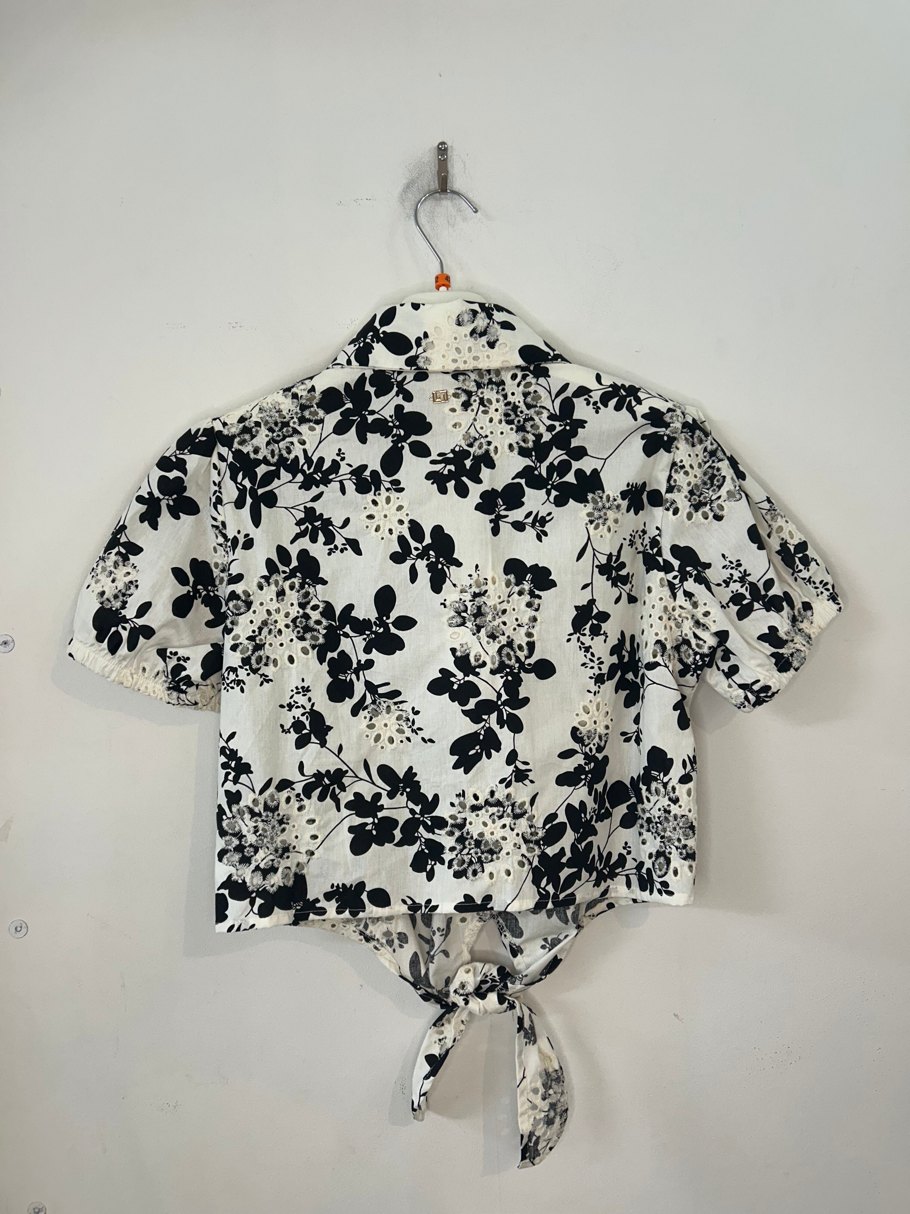 シャドーフラワープリント裾リボンシャツブラウス
