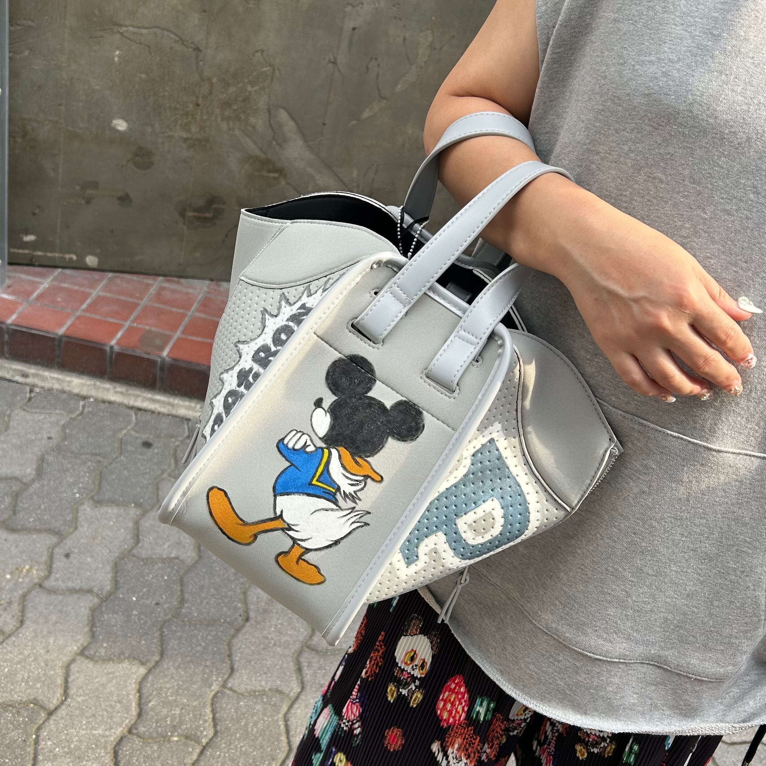 手書きのかわいらしいミッキーのデザインが目を引く、mickeyトート!日常使いからお出かけまで幅広く活躍するこのトートバッグは、使い勝手抜群のアイテムです。持ち手が長めで肩掛けにも対応しているため、収納力も抜群です♪