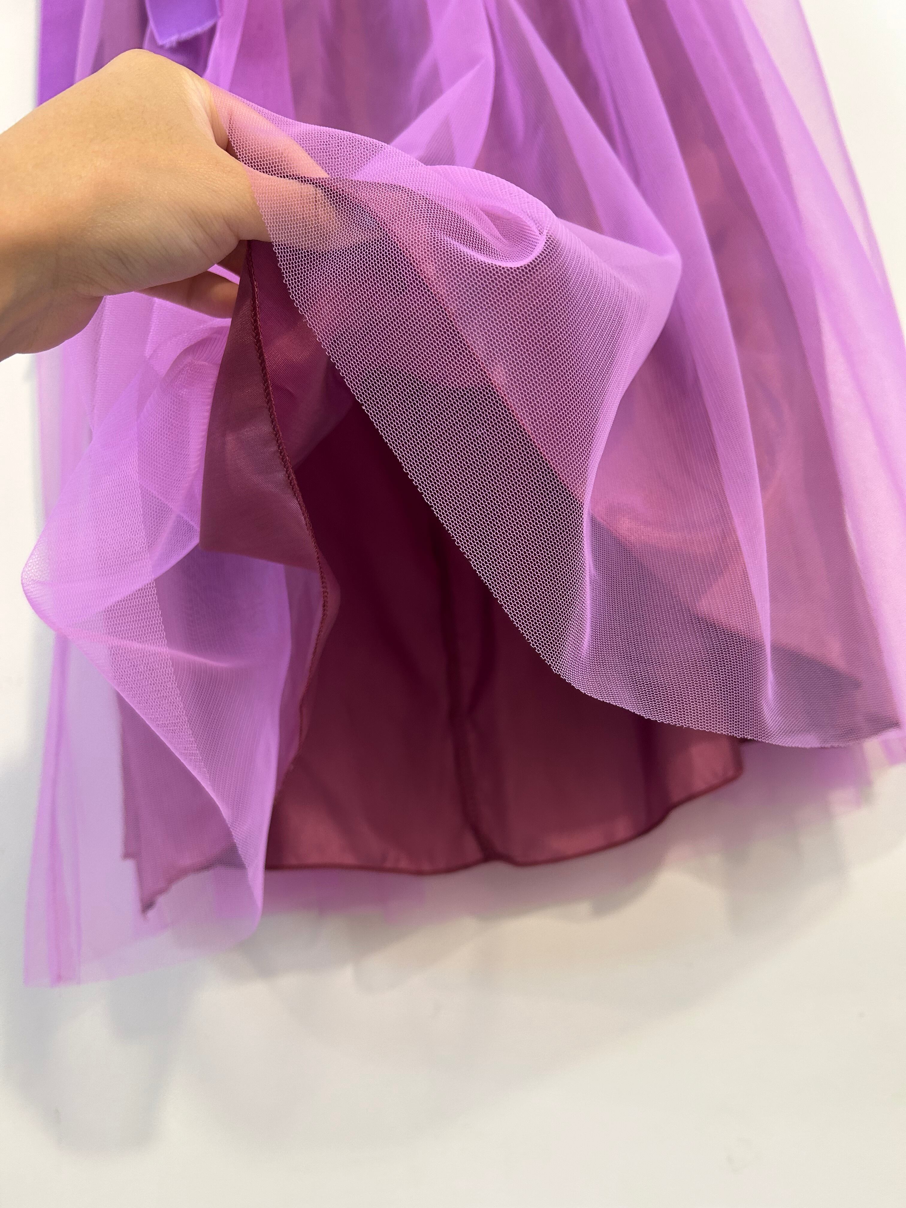 鮮やかなパープルカラーで女性らしいふんわりした雰囲気のチュールスカート♡