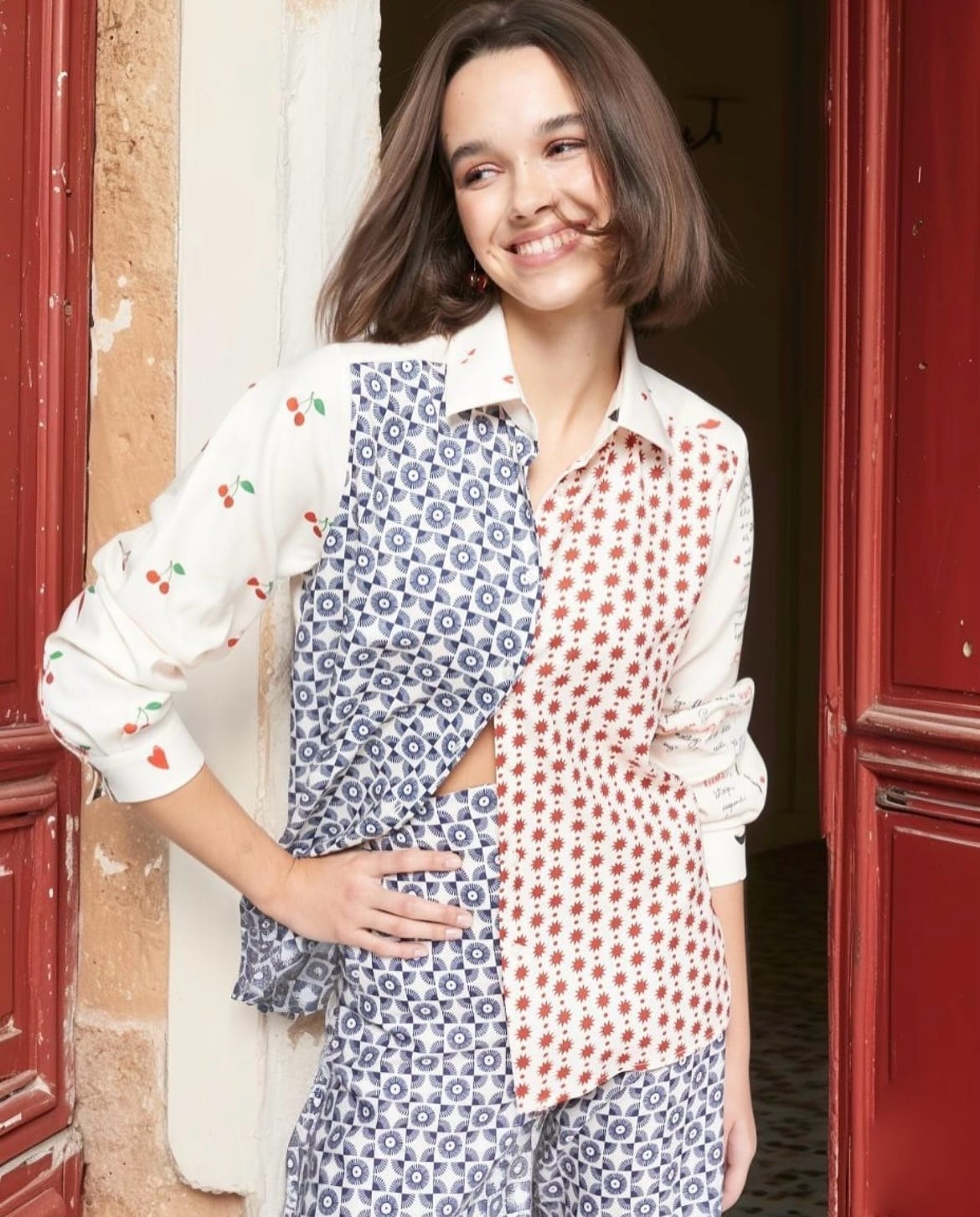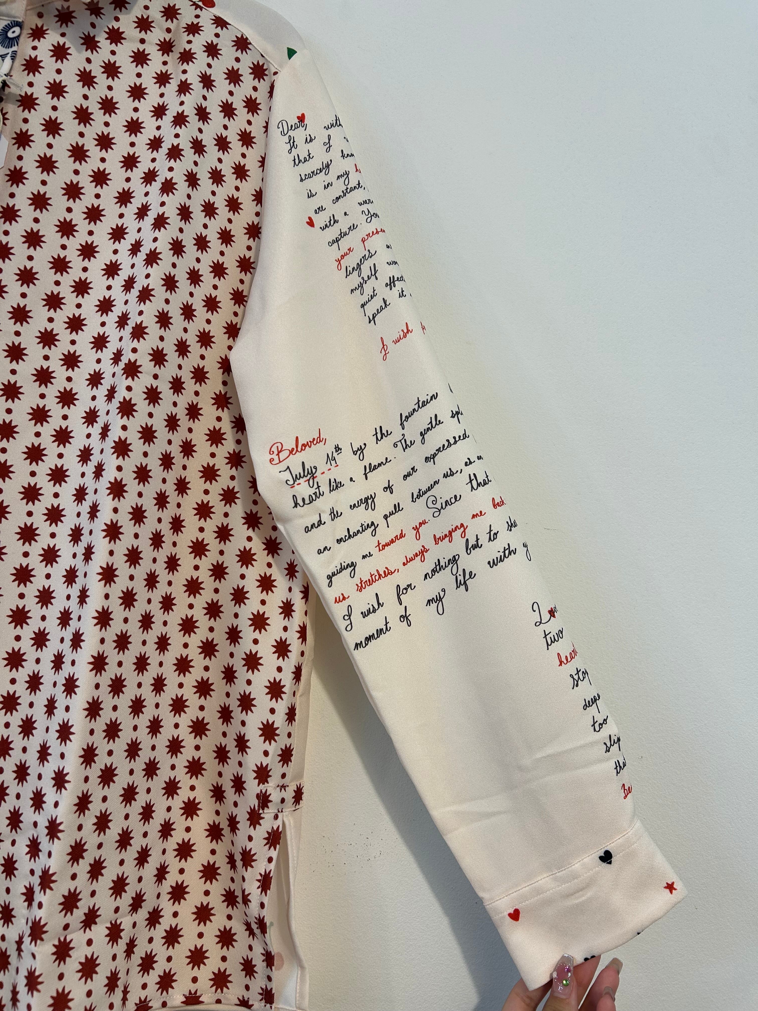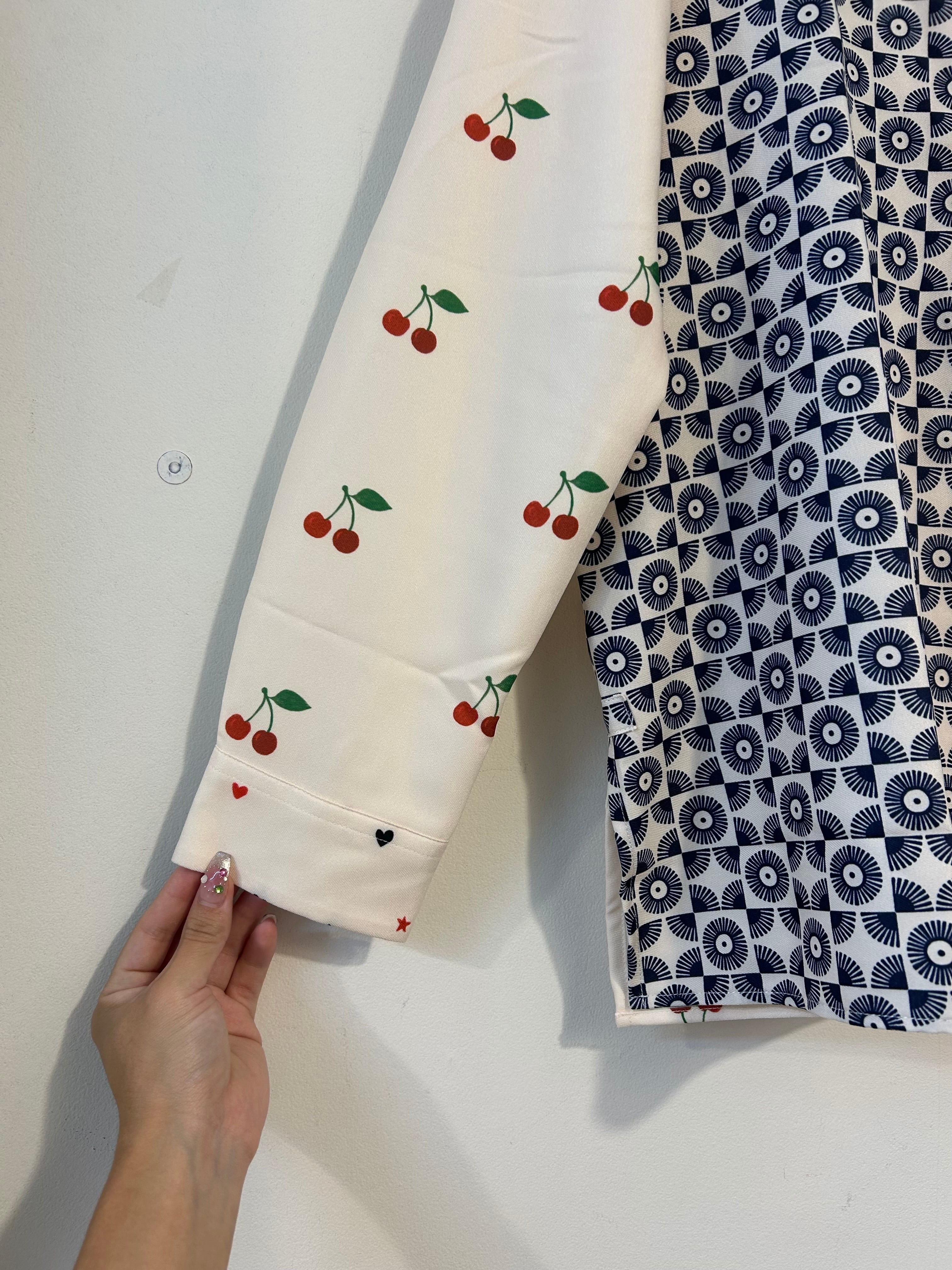 スタイリッシュなジオメトリックプリントと、さくらんぼラブレターが融合した前後で雰囲気も変わるシャツ♡