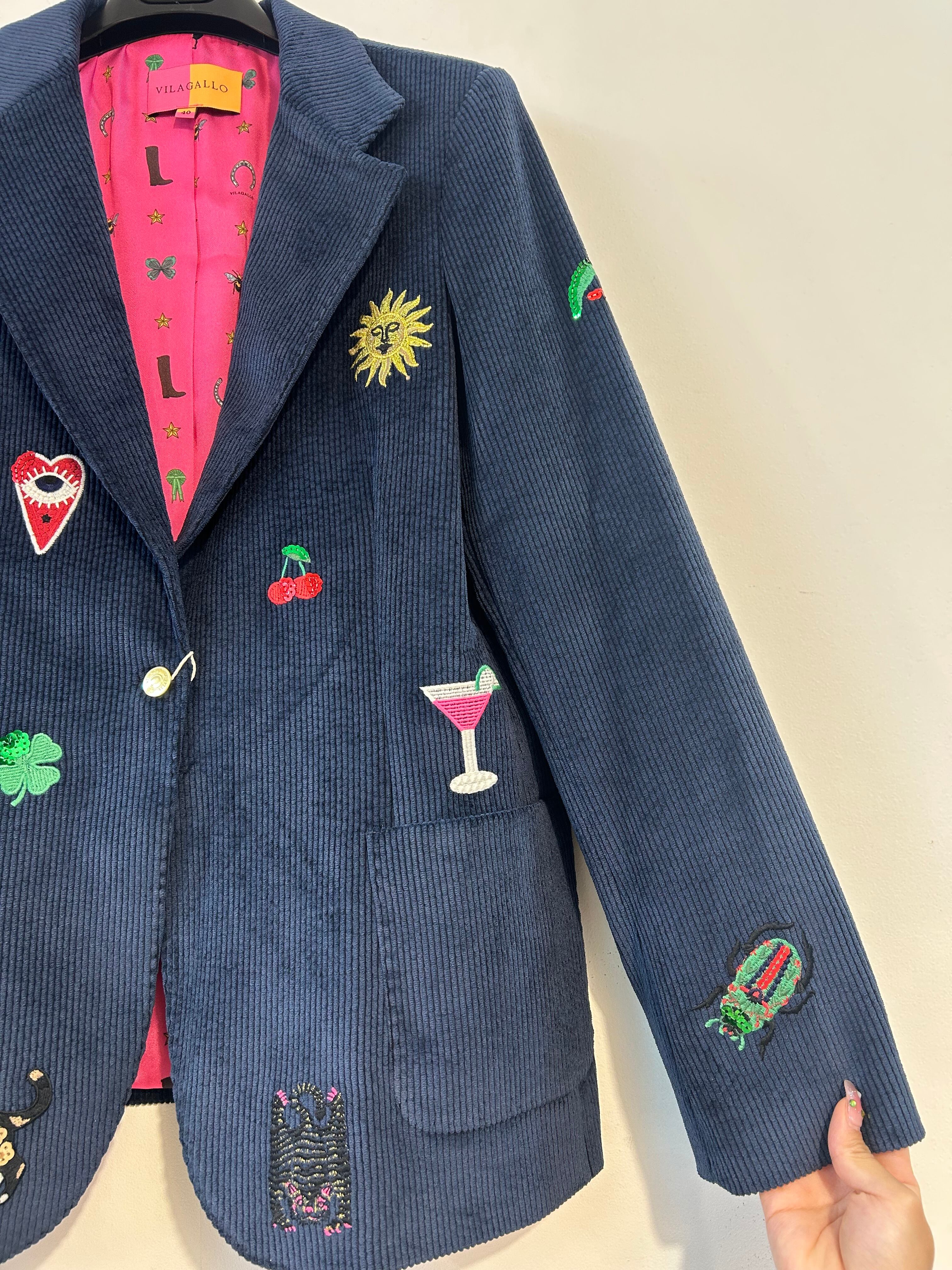 温かみのあるコーデュロイ素材に、華やかポップな刺繍が施されたジャケット!