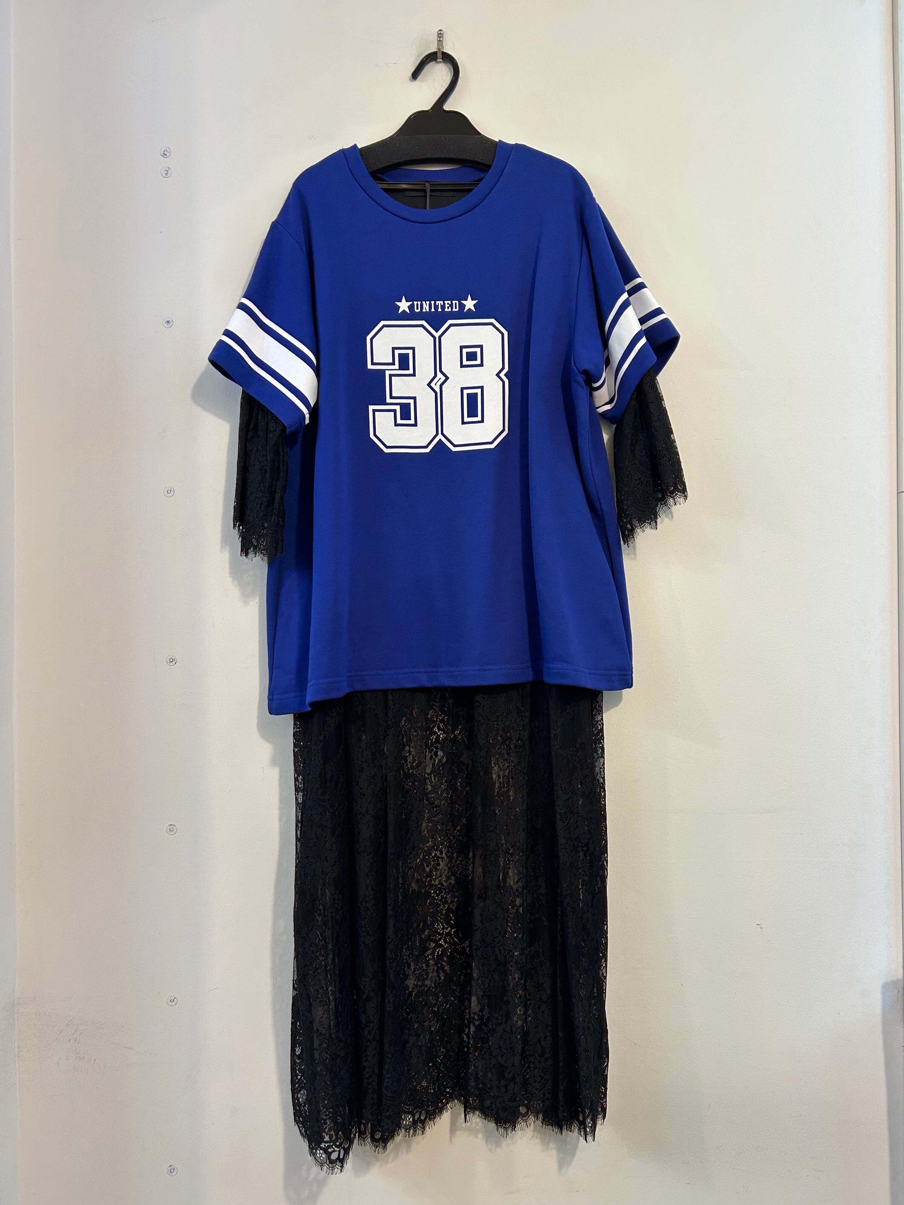 レースとTシャツ素材の絶妙なコンビネーションが魅力のワンピースです♡