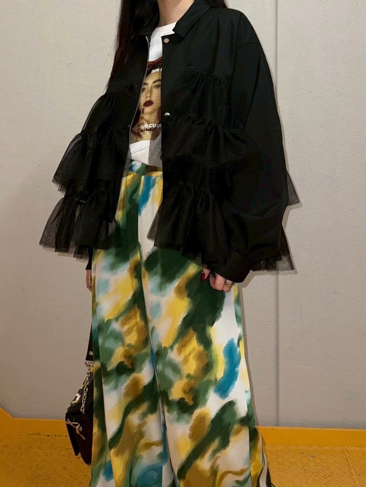 多彩なマーブルカラーデザインが魅力的なパンツです♡特別なスタイルを演出しつつ、着心地の良さも兼ね備えています!