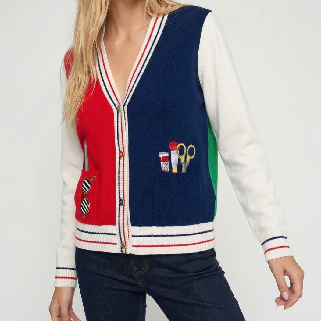 ART CLASS モチーフポケットVネックカーディガン