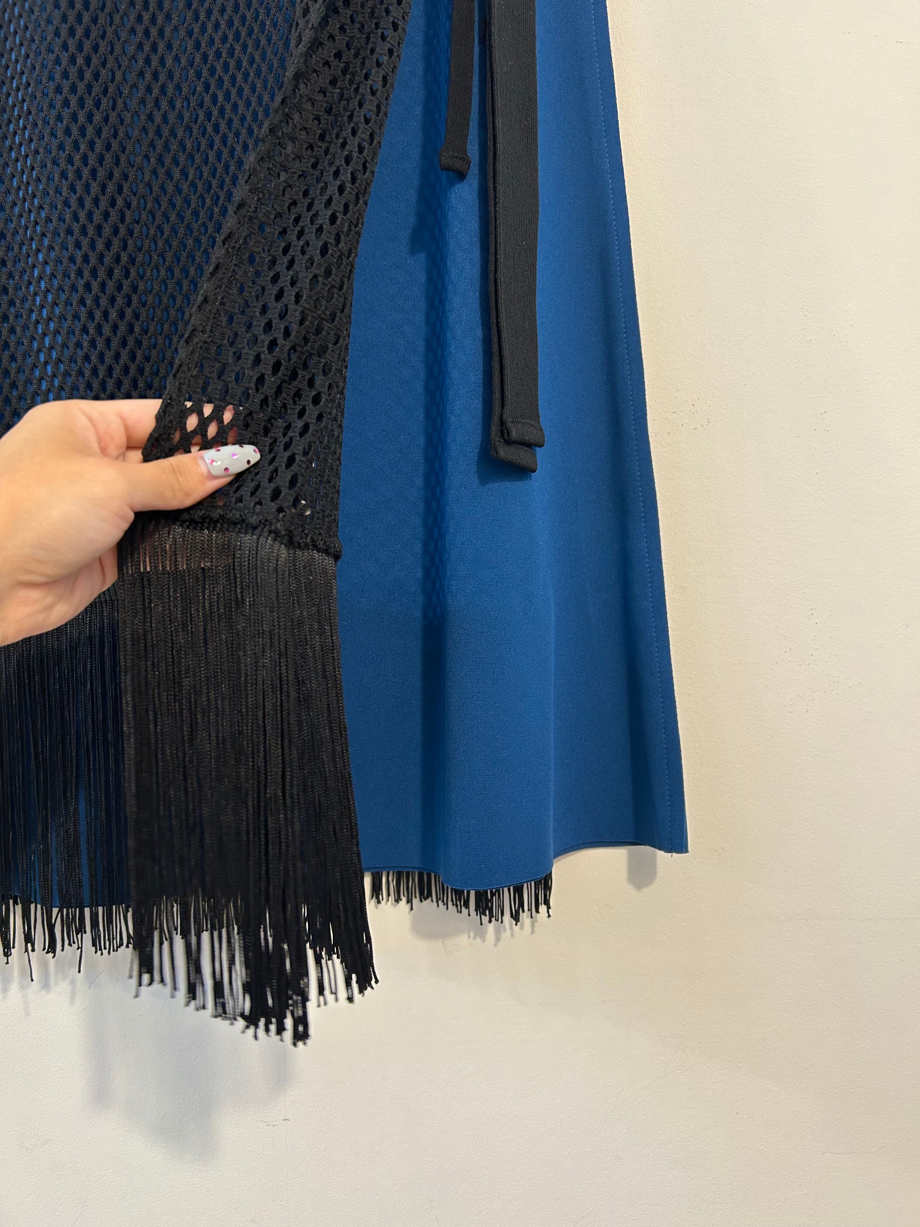 メッシュフリンジが合わさったとてもお洒落なスカート‼︎腰に巻いて頂くだけなので簡単にお洒落さをupできます♪