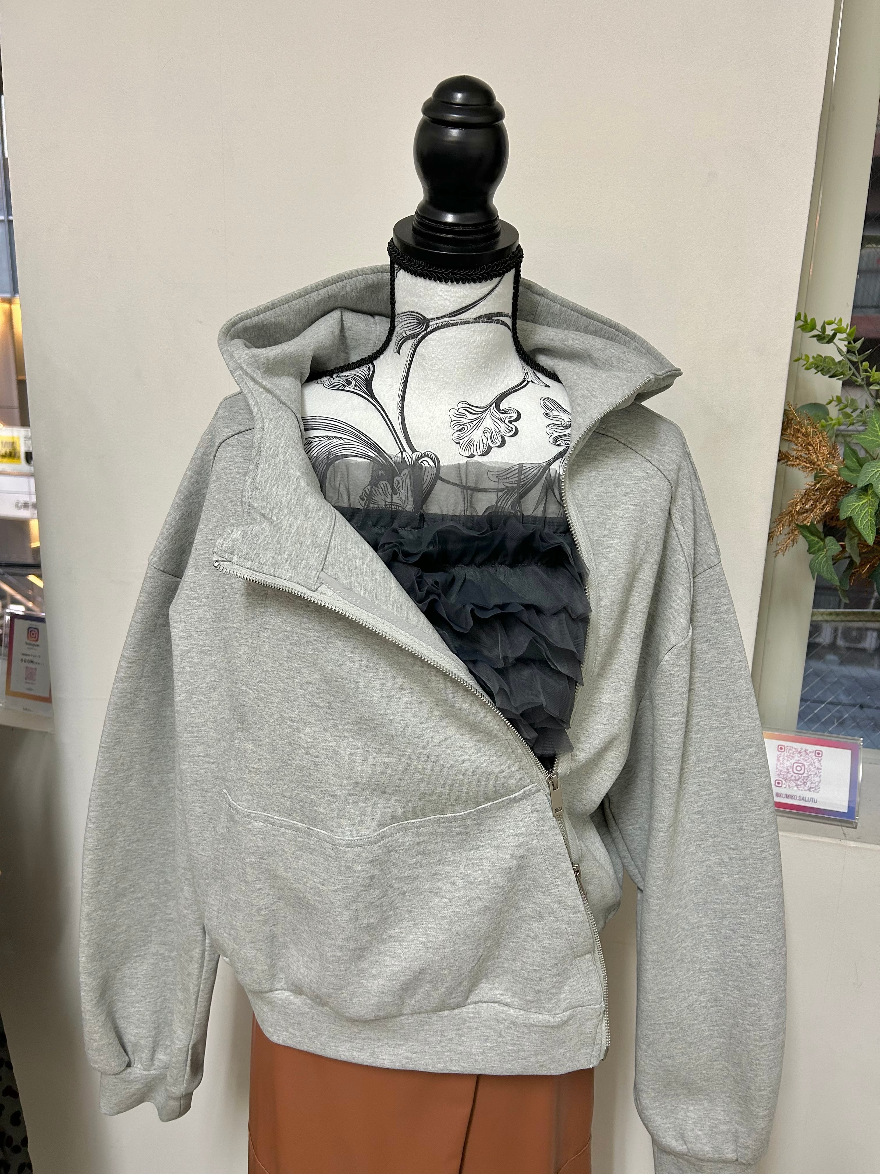 カジュアルに着たい時でもパーカーのジッパーを開けてチラッと見えるスタイルで着ても可愛い!♡