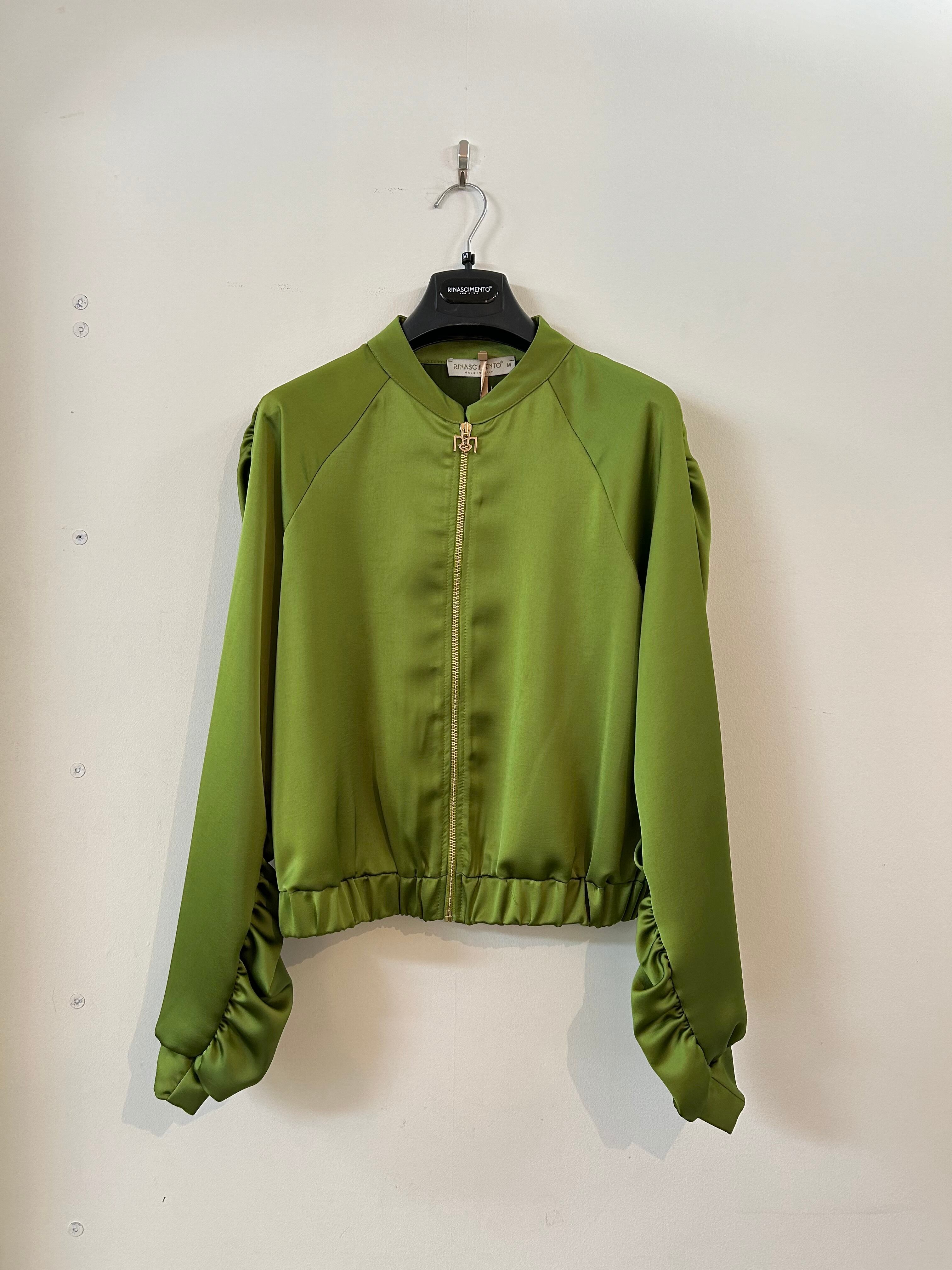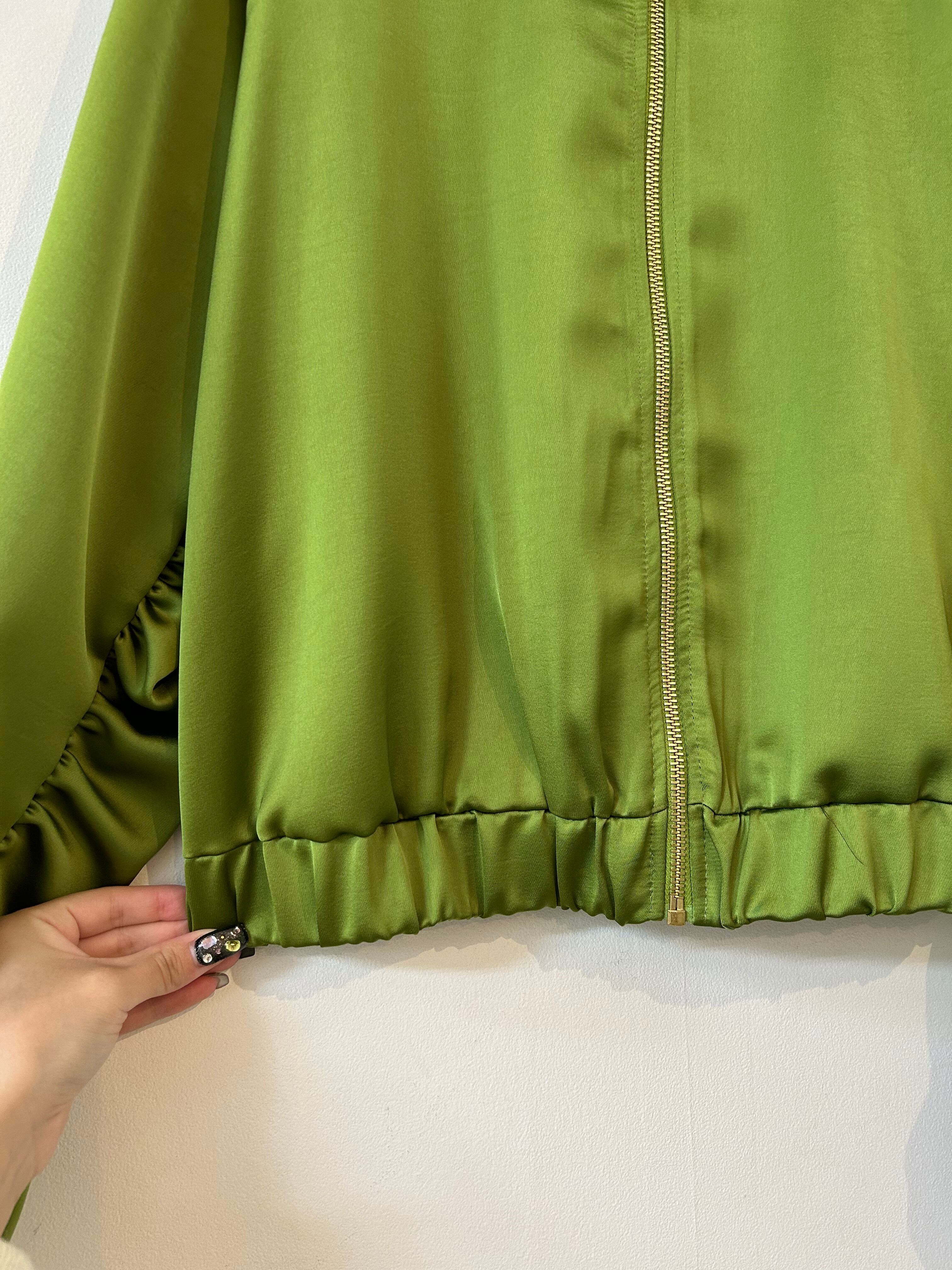 鮮やかなグリーンカラーに袖がフリルになったキュートなアイテム!