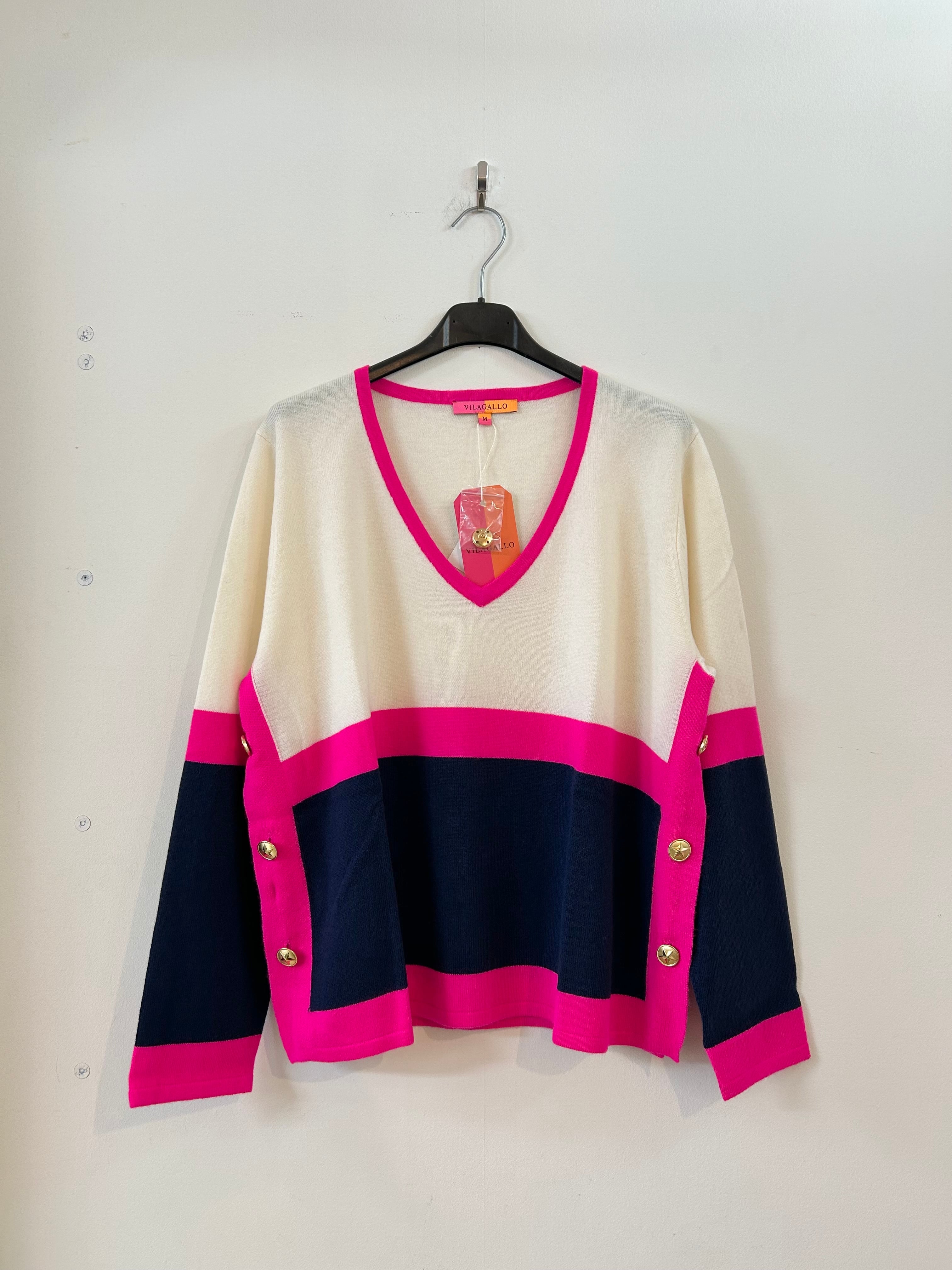 Vネックで女性らしいネックラインが見えるようになっていて、アクセサリーなどとも相性の良いニット♡