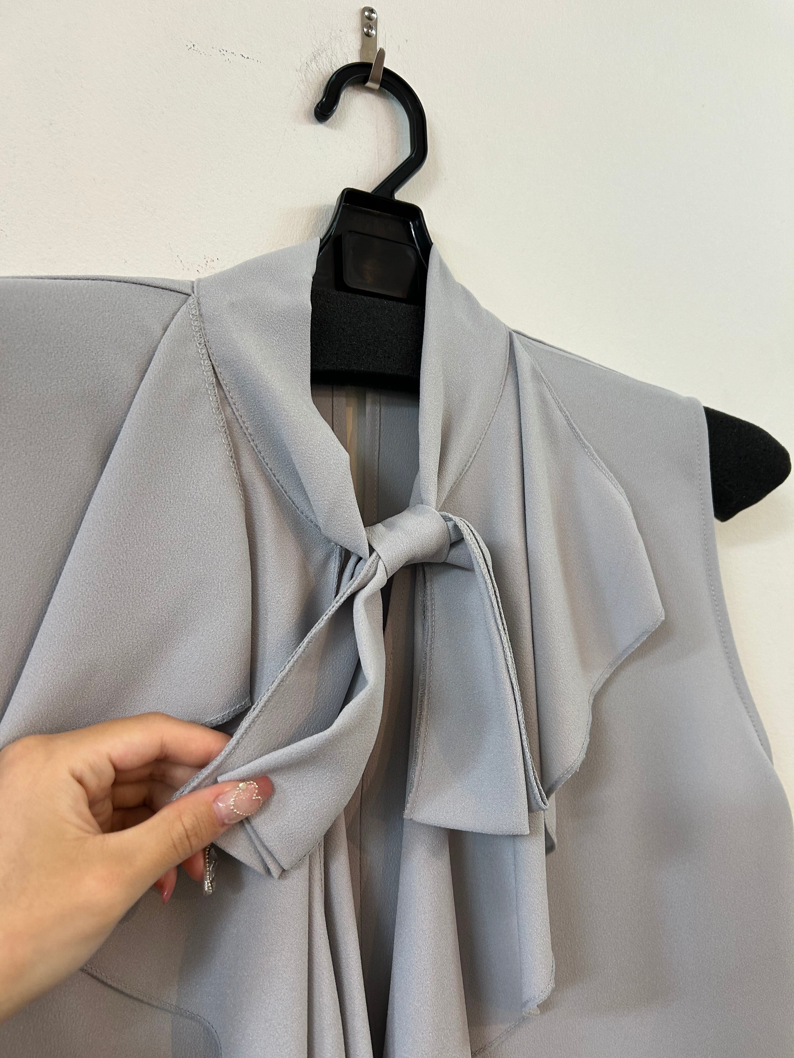 ジャケットの中に着て頂いてリボンを出す形にすると可愛いコーデに!