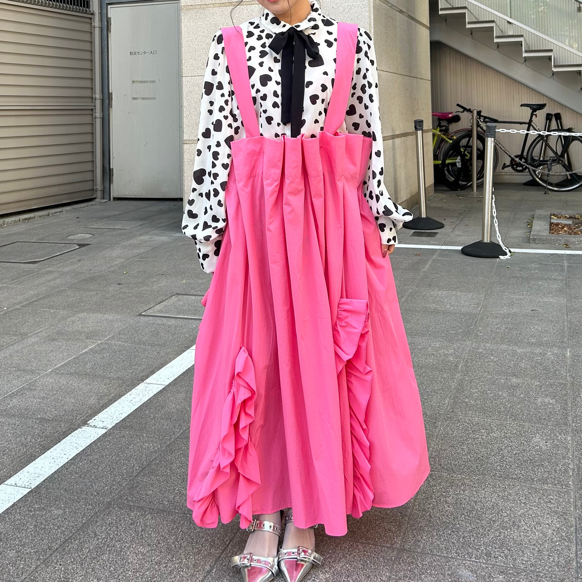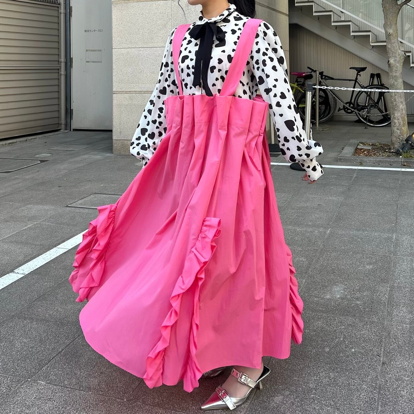 鮮やかピンクカラーでアシメのフリルが超ラブリーなジャンスカ♡