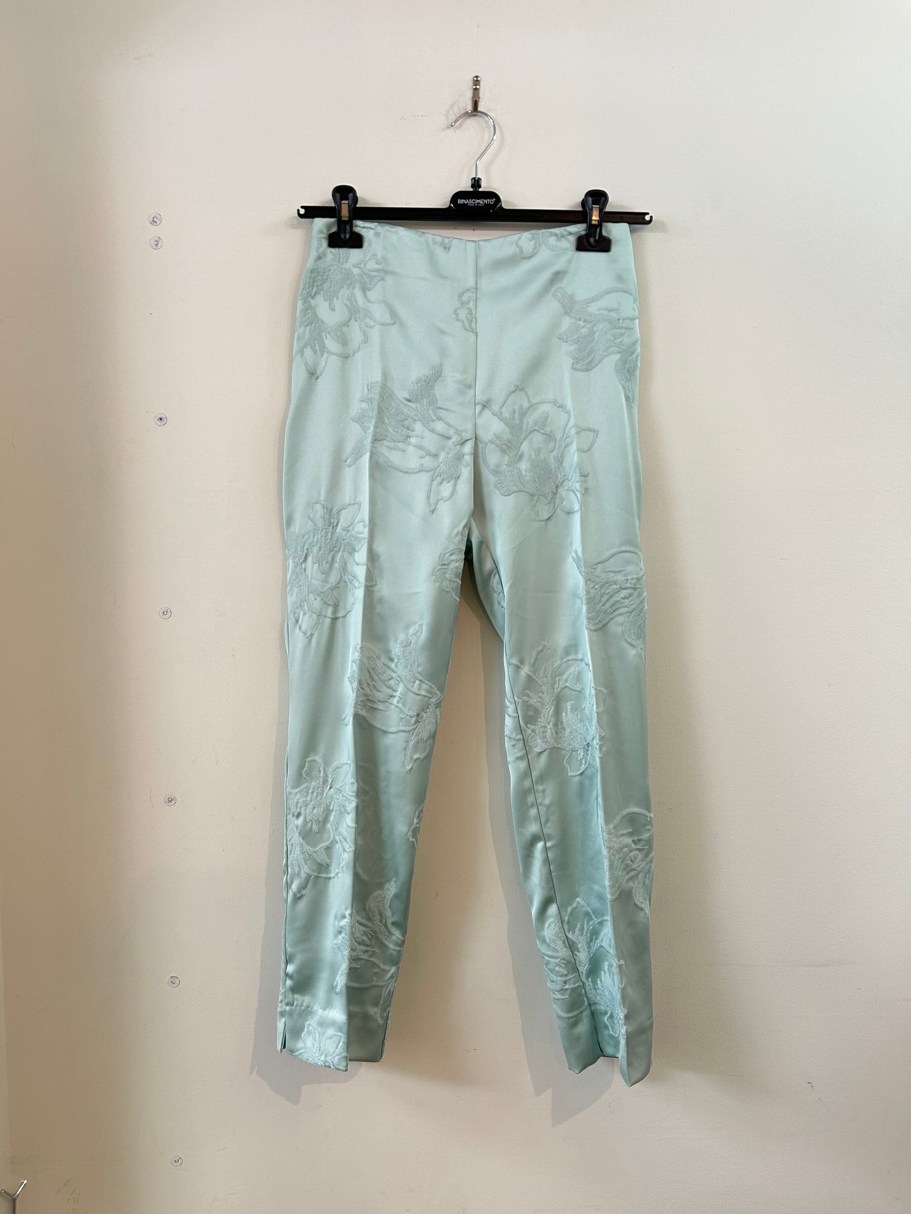 高級感溢れるエメラルドグリーンカラーに綺麗なフラワー刺繍が目を惹くパンツ!