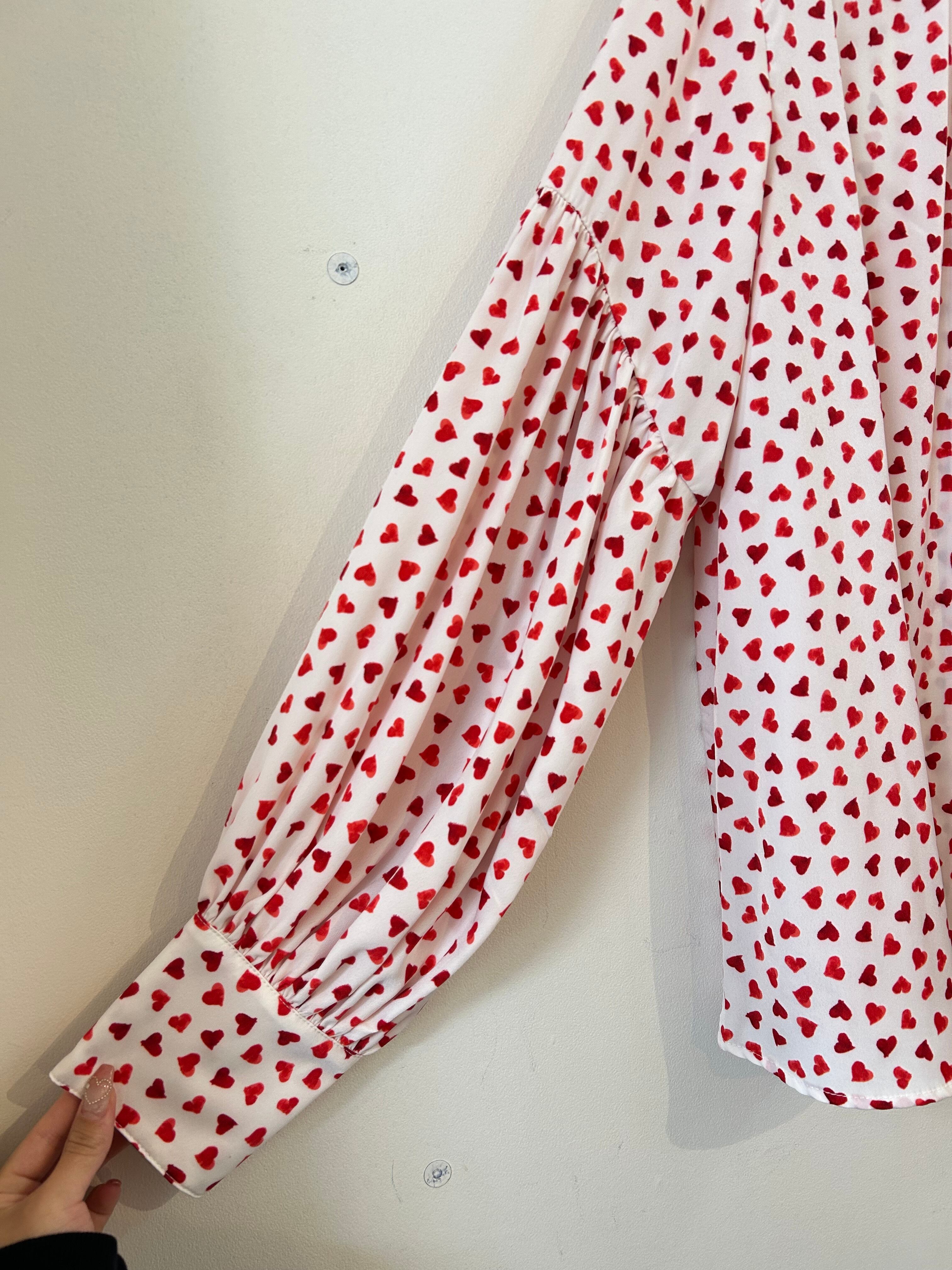 小さいハートが可愛いハイネックの綺麗めブラウス♡