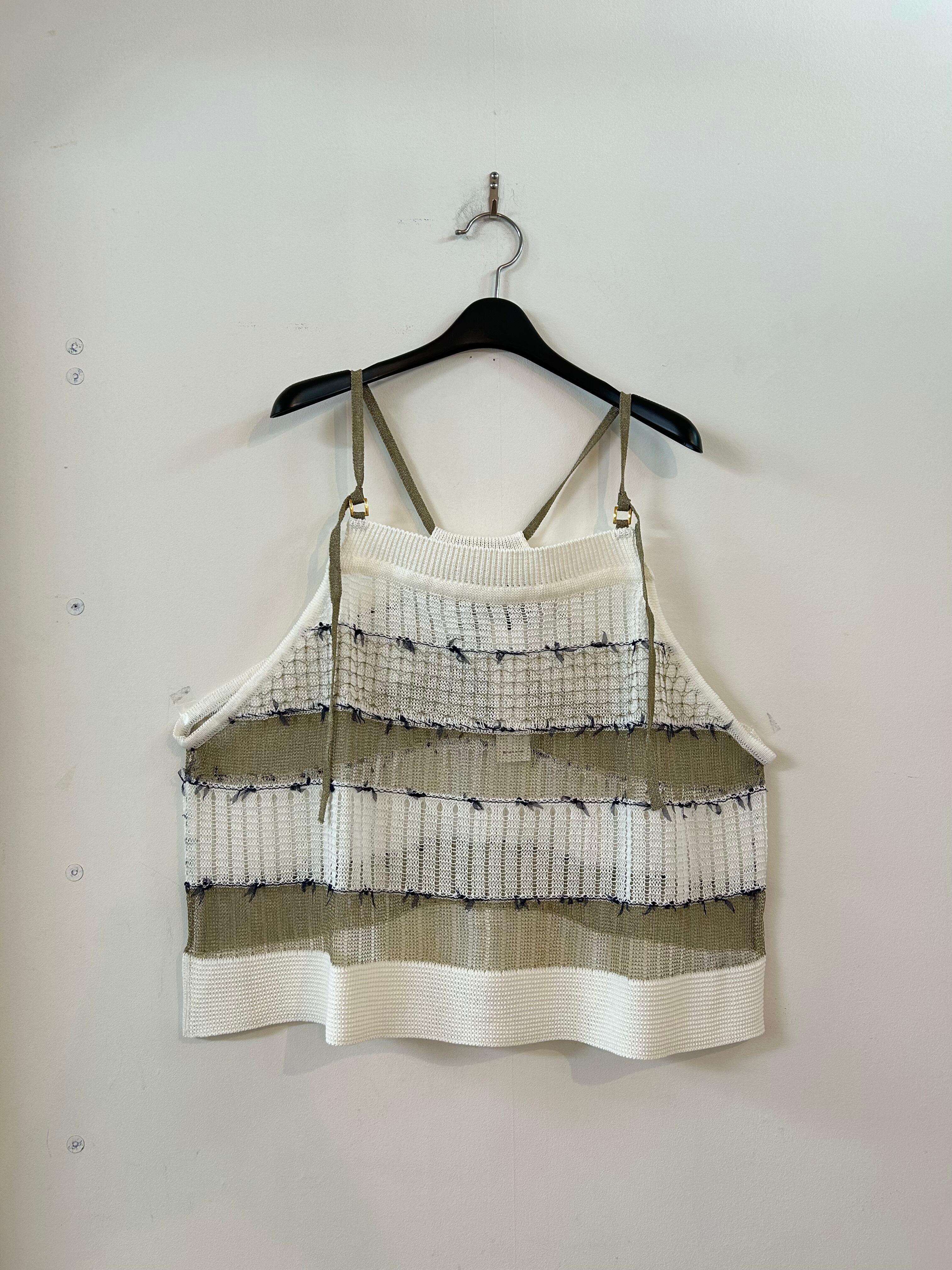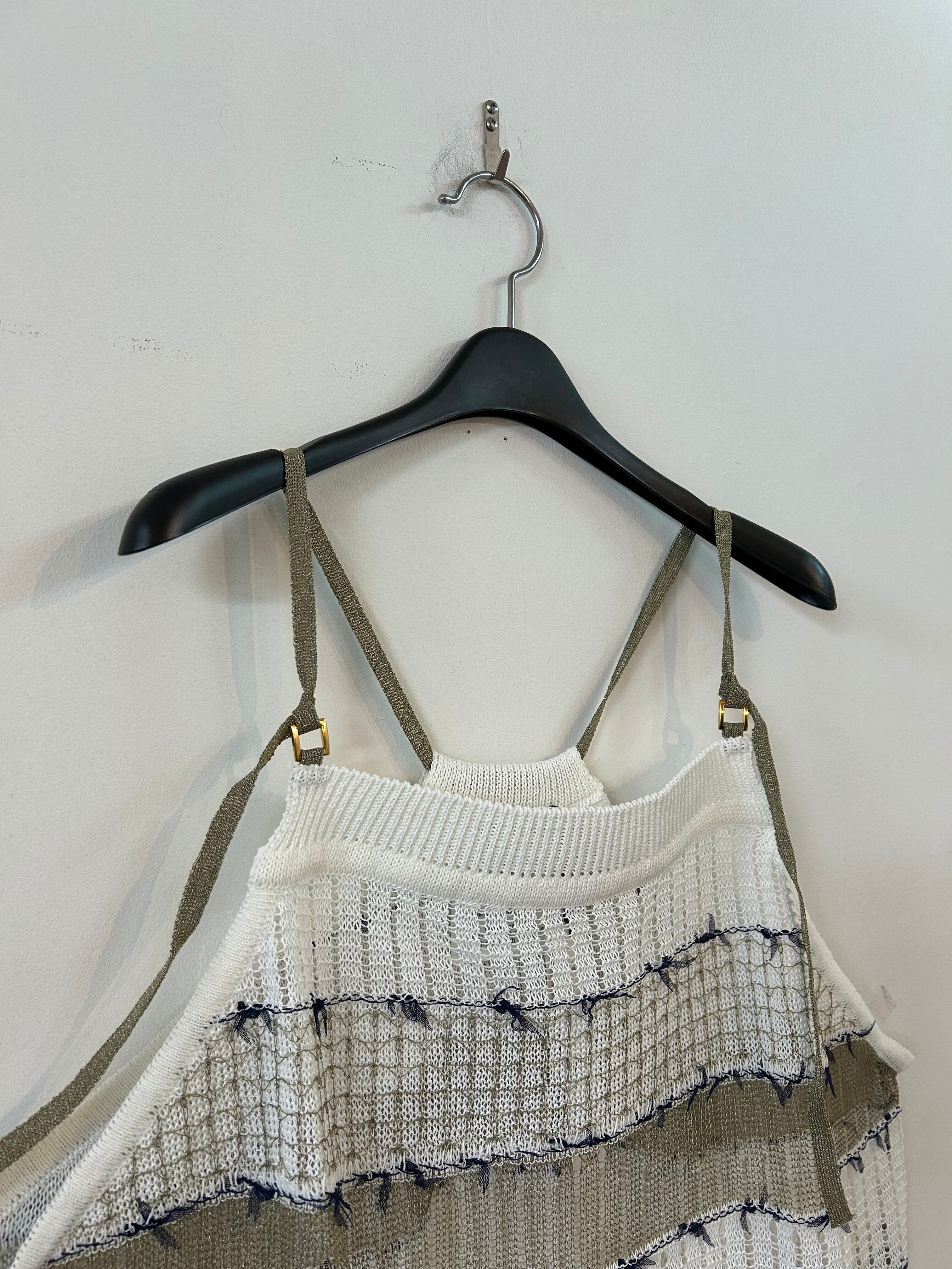 胸下から広がった程よいAラインの裾と、ラメ糸で編み上げたストラップがさりげなく揺れて女性らしさを演出♬