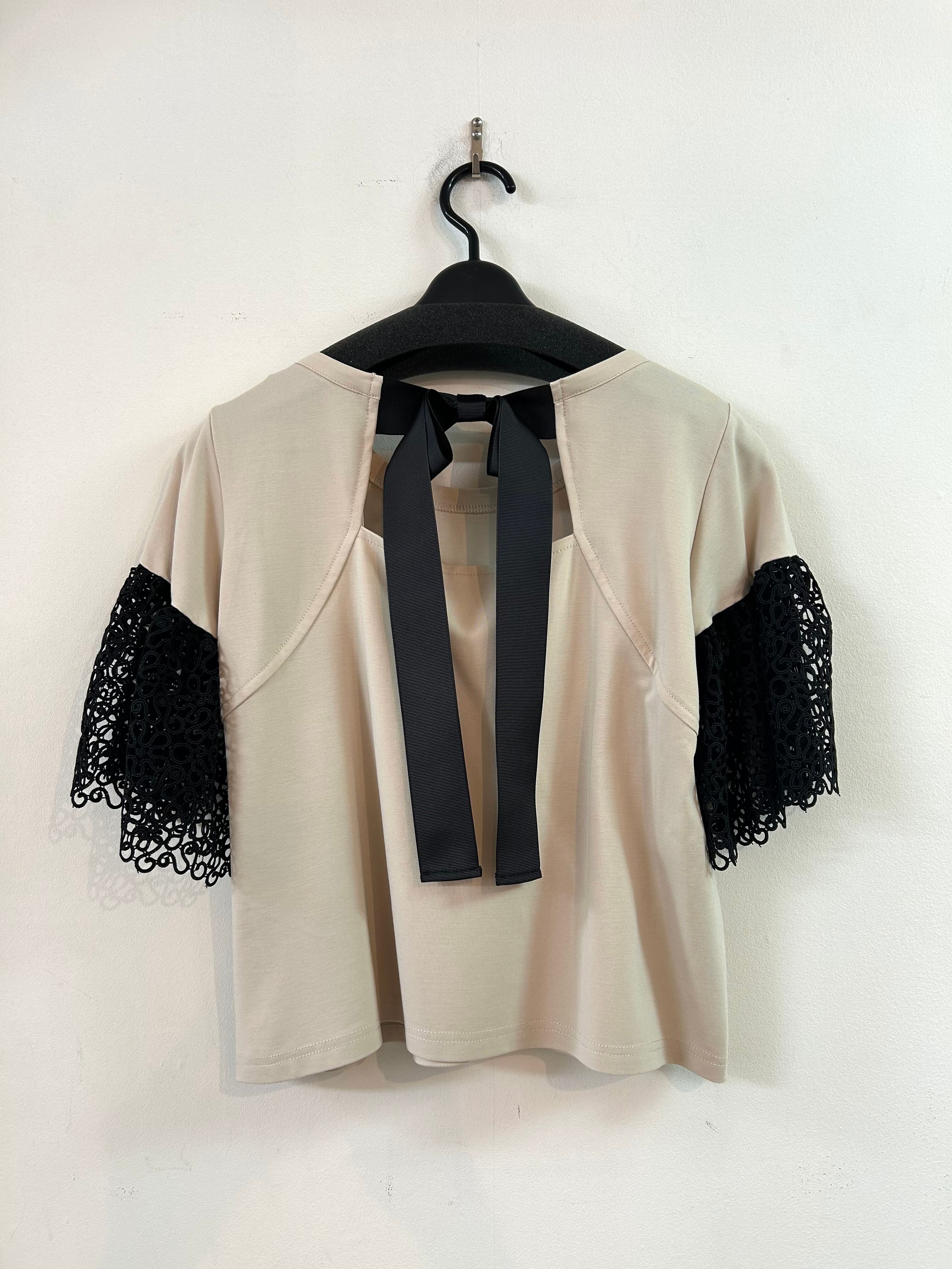袖レースバックリボンプルオーバー