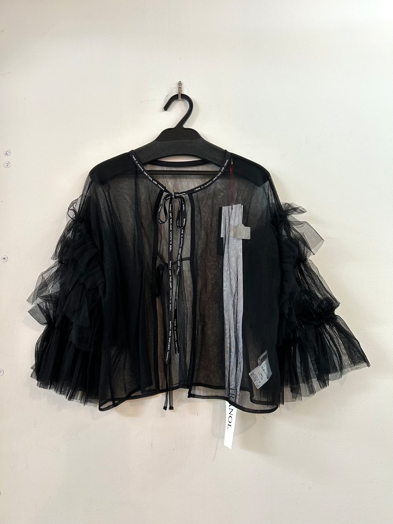 珍しいチュールのカーディガンで、袖のボリュームがふわっと女性らしい可愛い印象に!